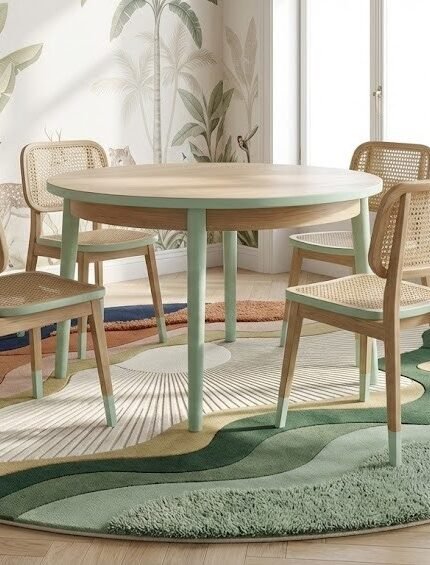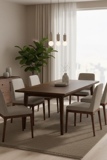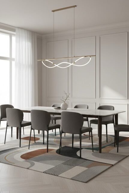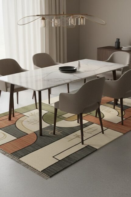 Hand-tufted with precision by skilled artisans, this carpet offers a soft, luxurious feel underfoot while remaining practical for everyday dining use. The neutral palette blends effortlessly with wood, marble, or metal dining sets, making it a versatile choice for homes that value comfort and sophistication.