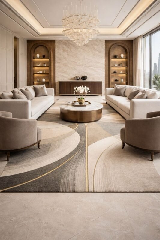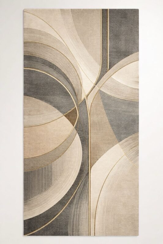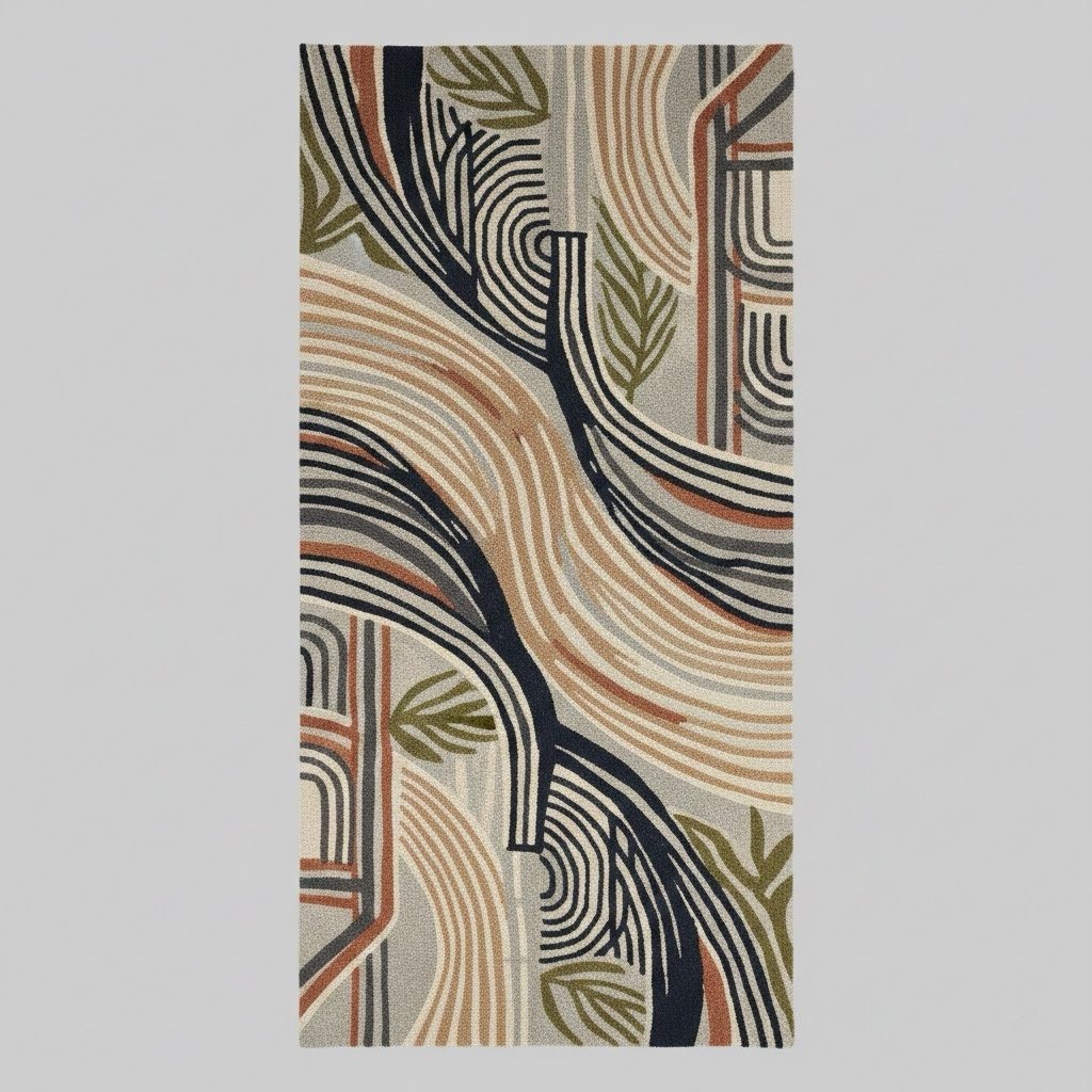 The vertical composition guides the eye effortlessly through the space, making it ideal for large areas, corridors, lounges, and outdoor hospitality settings. A refined palette of warm sand, muted terracotta, charcoal black, soft ivory, and olive green delivers a grounded, nature-inspired aesthetic while ensuring timeless appeal and visual comfort.