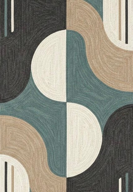 Meridian Flow captures the elegance of movement through fluid, wave-like lines that travel across a structured geometric base. The layered tones of deep navy, slate grey, soft beige, and metallic accents create a refined visual rhythm, making this design ideal for modern homes, luxury corridors, boutique hotels, and statement commercial spaces. The flowing pattern brings a sense of direction, energy, and sophistication to any interior.