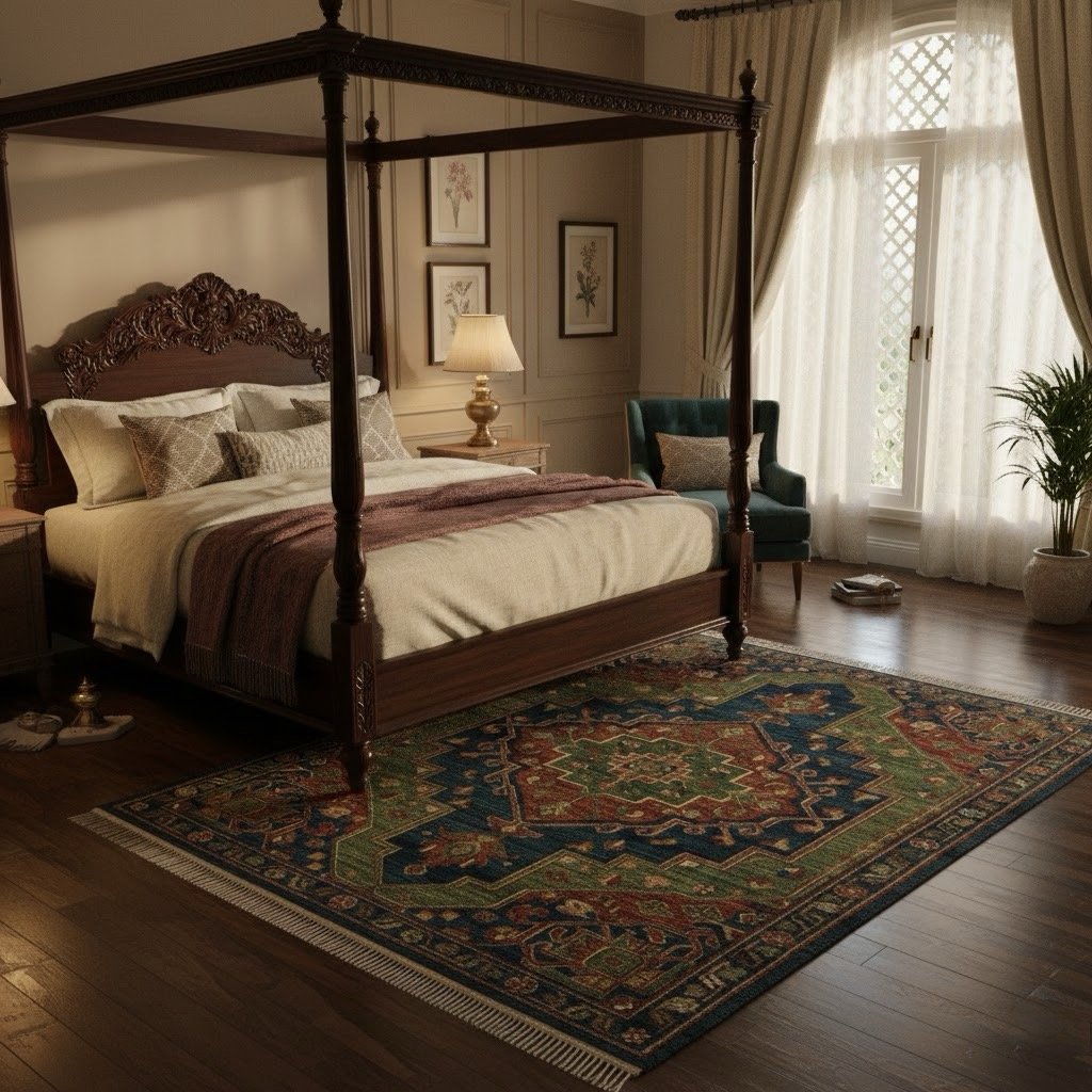 Shayan Bela (The hour of rest) — is a carpet design inspired by the quiet poetry of bedtime moments, when the world softens and the bedroom becomes a personal sanctuary. Its gentle texture and serene tonal composition create a calming foundation, inviting comfort, warmth, and effortless elegance into intimate living spaces.