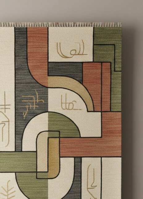 Sutra Living draws inspiration from the flowing lines of ancient textiles and the calm rhythm of modern interiors. The design features a gentle linear pattern layered with soft tonal variations, creating a sense of movement without overpowering the space. Its warm neutral palette makes it a versatile foundation for contemporary dining spaces.